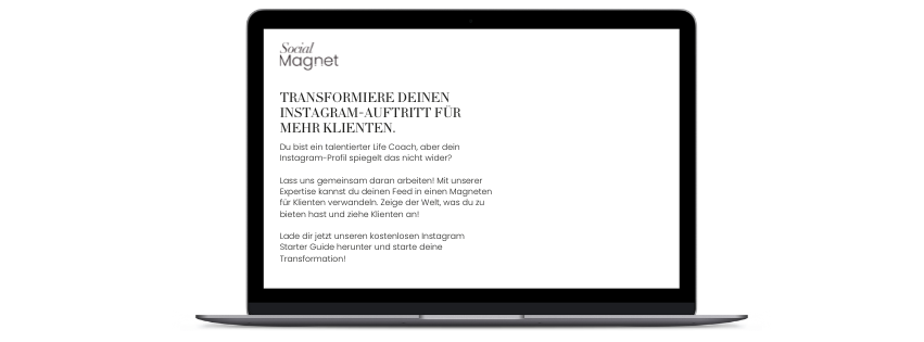 „Der Instagram Starter Guide von Social Magnet war genau das, was ich als Life-Coach gebraucht habe 😍. Die 7 Schritte sind einfach zu folgen und haben mir geholfen, meinen Instagram-Auftritt professionell zu gestalten. Jetzt werde ich von potenziellen Klienten wahrgenommen und habe bereits die ersten neuen Klienten über Instagram gewonnen – ganz ohne großen Aufwand!“